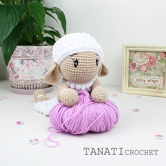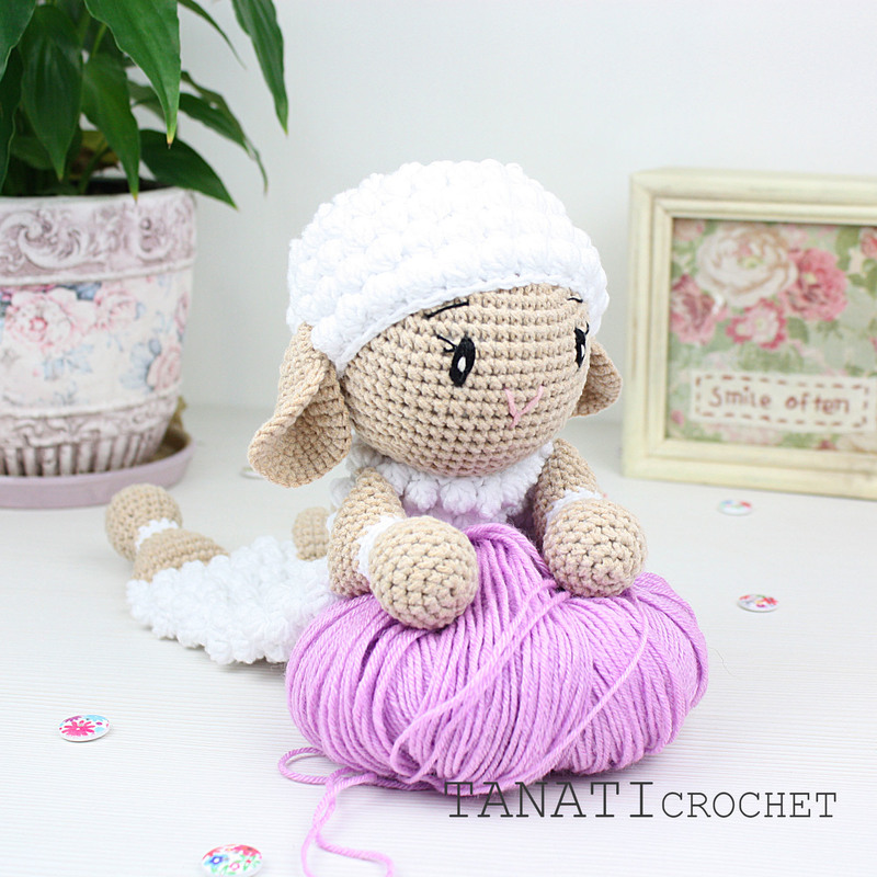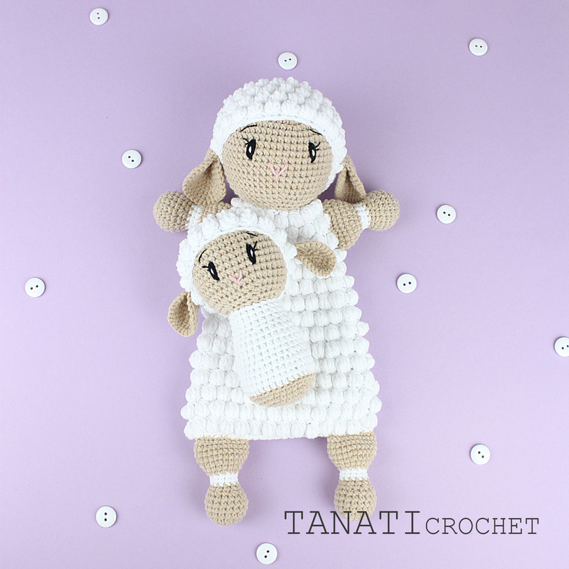 Größe 32 cm, Rassel LAMM – Größe 14 cm, mit dem angegebenen Garn