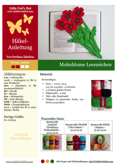Vervielfältigung und Veröffentlichung dieser Anleitung – mechanisch, elektronisch oder auf andere Weise einschließlich Fotokopie - ohne schriftliche Genehmigung ist untersagt! Vielen Dank für Ihr Verständnis, und viel Spaß beim Häkeln!