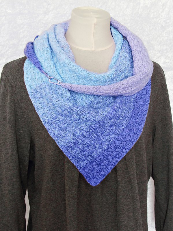 Das auf den Bildern zu sehende klassische Dreieckstuch wurde gestrickt von Marianne Aust.