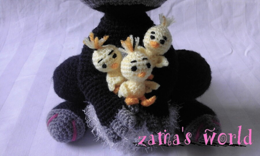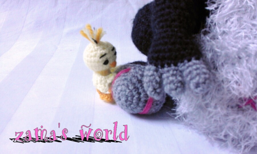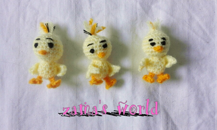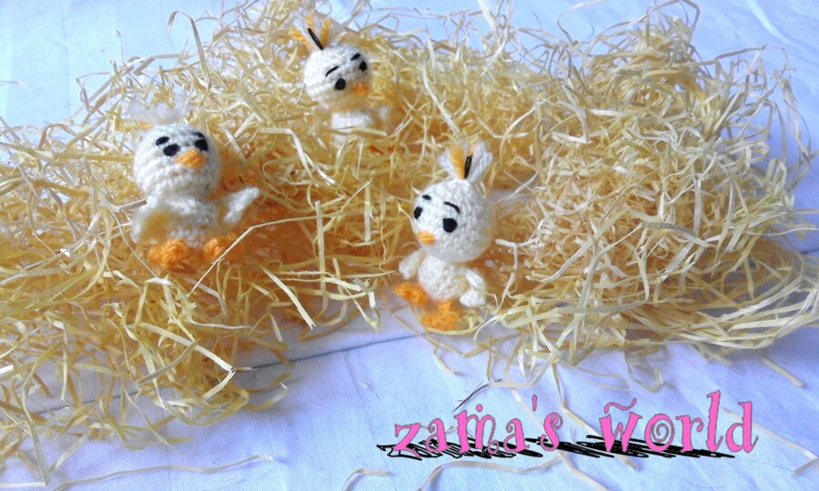 Meine Küken messen circa 6 cm (bis zu den Haarspitzen gemessen) und wurden ebenfalls mit einer Häkelnadel der Stärke 1,50 gefertigt.
