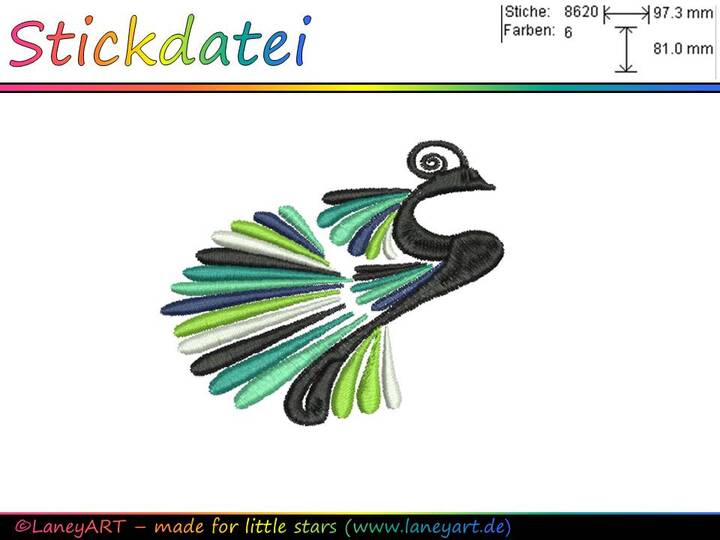 Das abgebildete Logo "LaneyART", die bunte Umrandung sowie Angaben zu Farbanzahl, Größe, etc. sind selbstverständlich kein Bestandteil der Stickdatei.