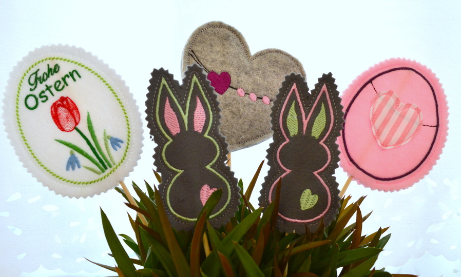 Süße Blumenstecker zu Ostern, 4erlei Motive zum dekorieren von Blumentöpfe.