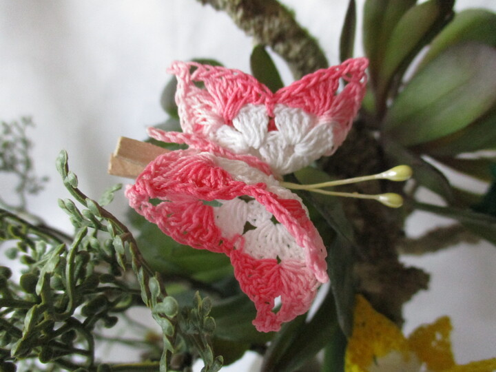 Mit dieser Anleitung schnell und einfach nachzuhäkeln. Die kleinen Schmetterlinge sind einfach überall an Ihre Tischdekoration, Osterstrauß oder einem Geschenk anzuklammern.