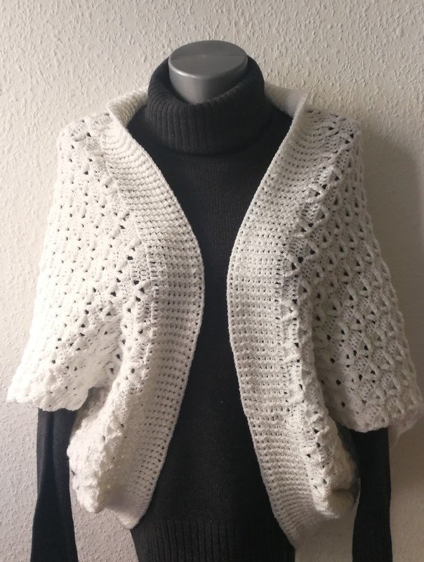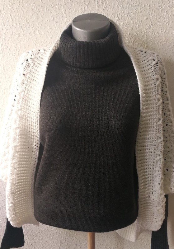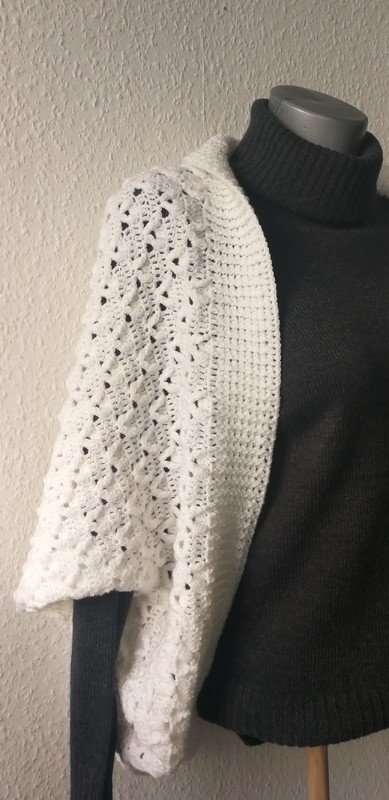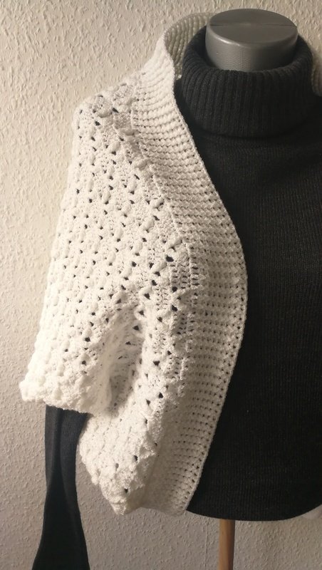 Ein hübscher Seelenwärmer mit Perlgarn gearbeitet.