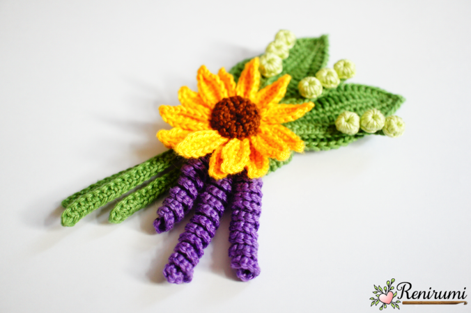 Ebook für ein gehäkeltes Anstecksträußchen mit einer Sonnenblume