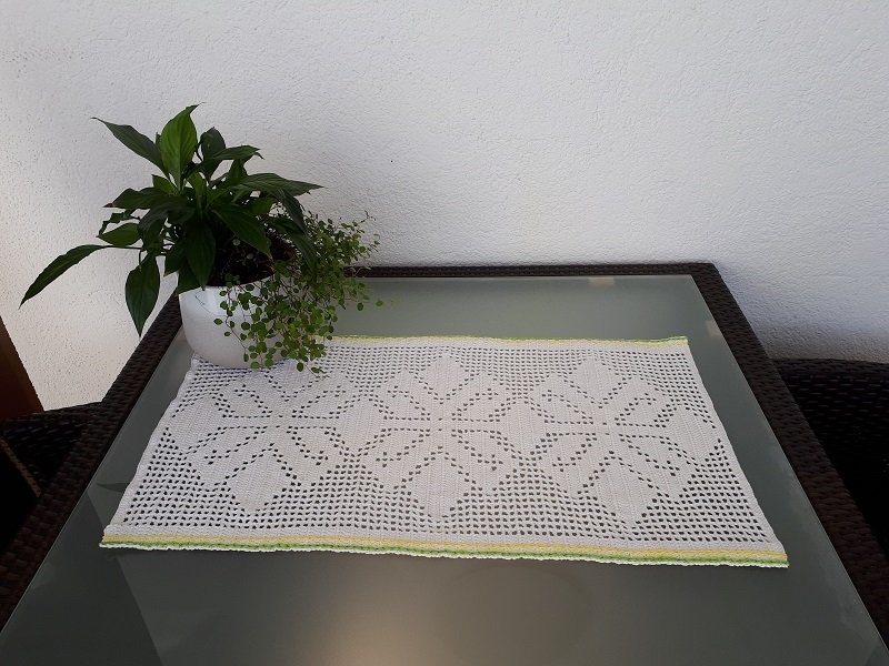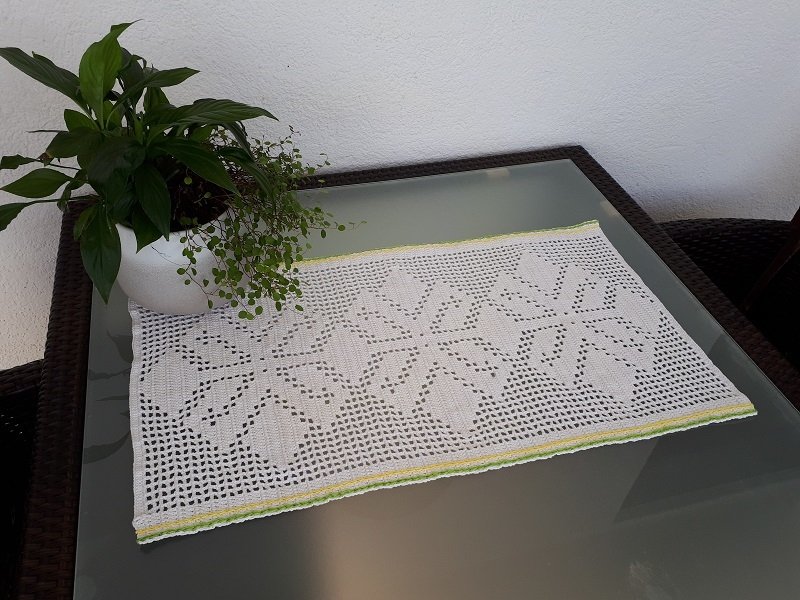 Mit dieser Anleitungen kannst du dir solch einen wunderschönen Tischläufer häkeln. Diese Anleitungen ist für Anfänger geeignet, können musst du lediglich nur Luftmaschen und Stäbchen.
