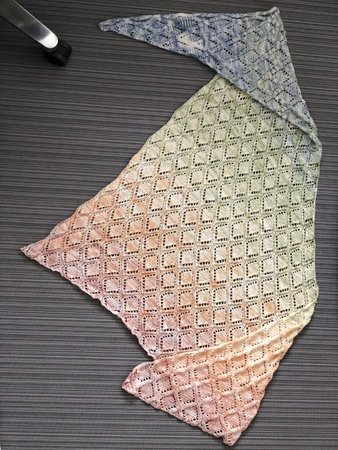 Das Tuch wird nach einer Strickschrift gearbeitet.