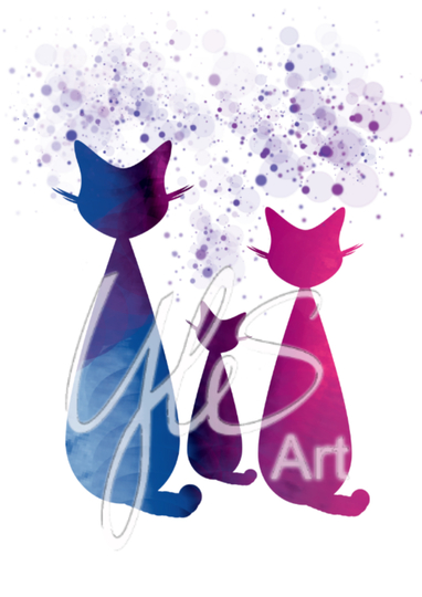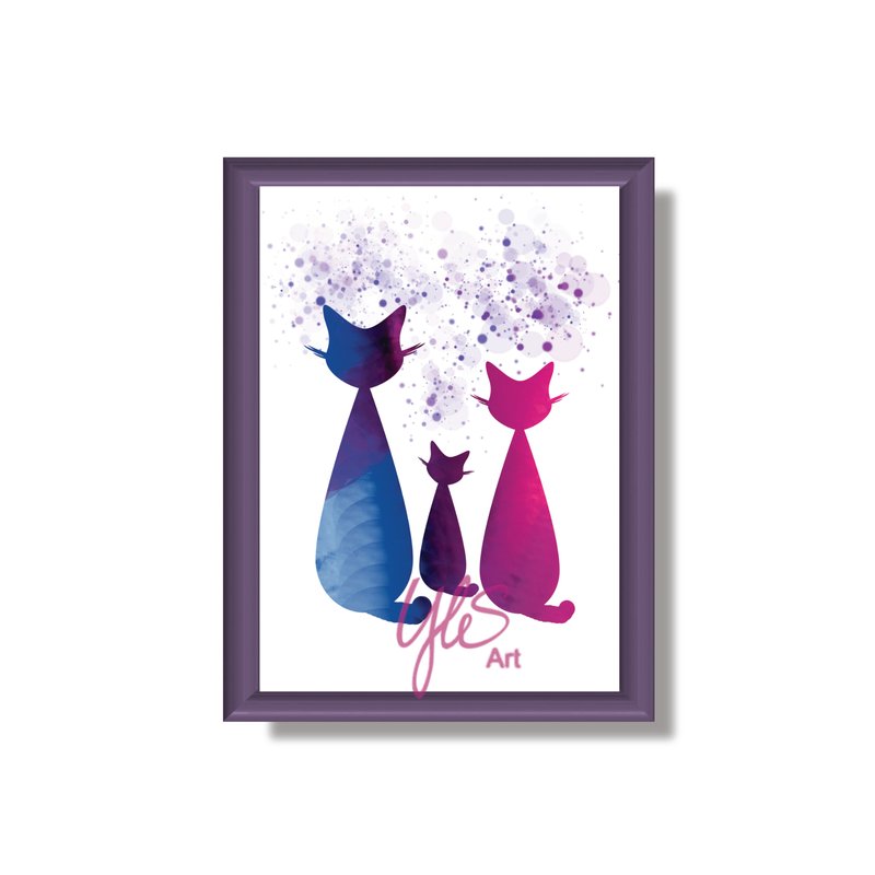 Bild-Nr. 2002 - Digital gezeichnetes Bild in kräftigen Farben. Katzen.