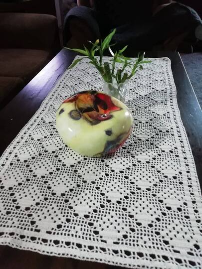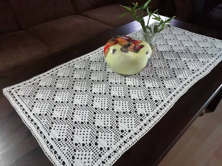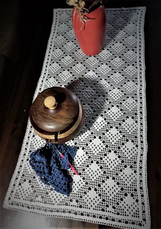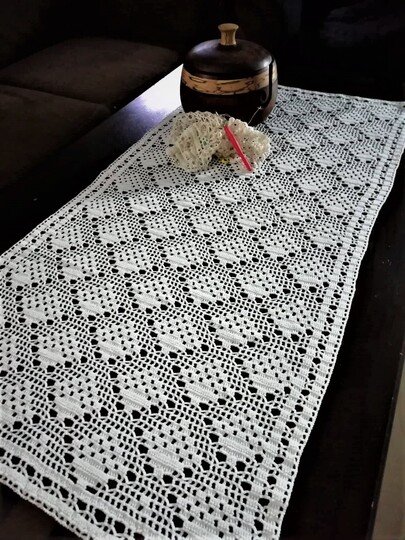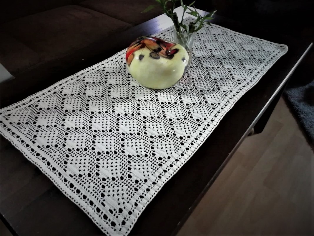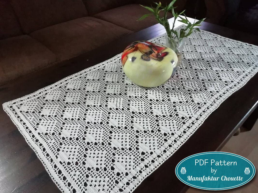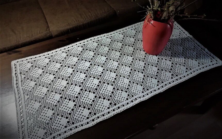 Eine Häkelanleitung für einen Tischläufer in Filethäkelei.