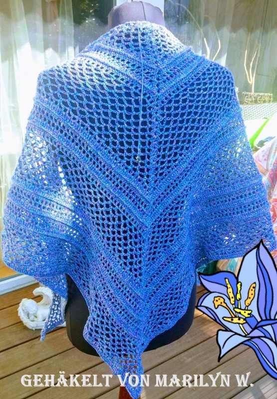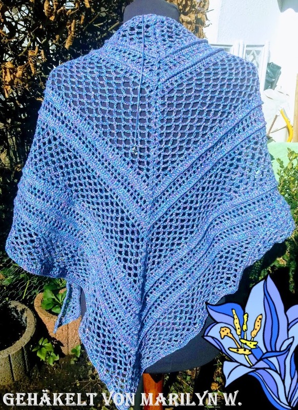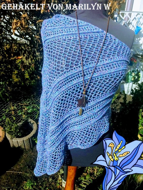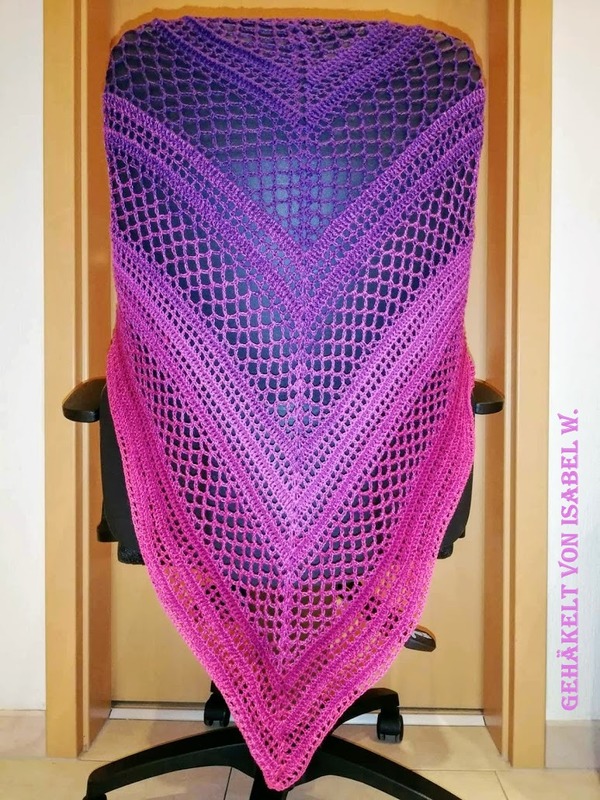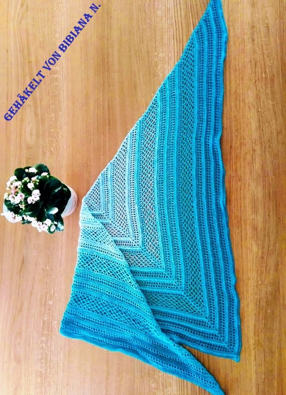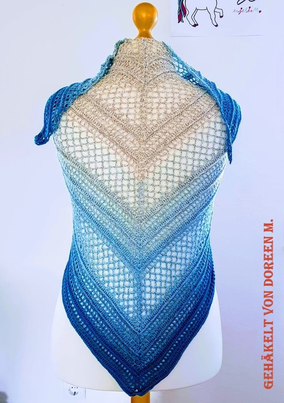 Ich habe für das Tuch etwa 1000 m 3-fach gefachtes Garn mit einer Nadelstärke 3,5 gehäkelt.