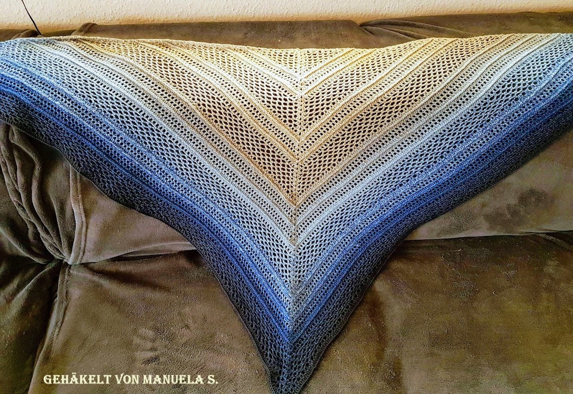 Das Dreieckstuch Lufthauch passt zu jeder Jahreszeit. Zusammengerollt um den Hals getragen im Winter und Herbst, locker über die Schultern im Frühling oder lauen Sommernächten.