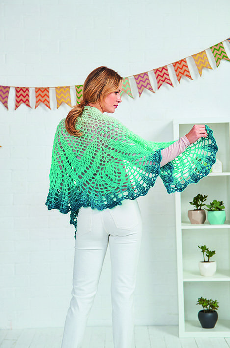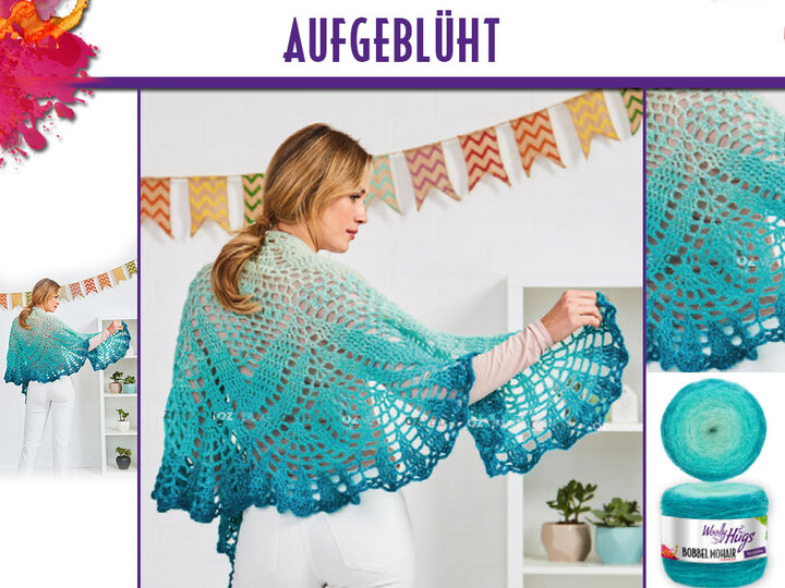 Wie eine Blüte wirkt das Muster diese wunderschönen halbrunden Tuches.