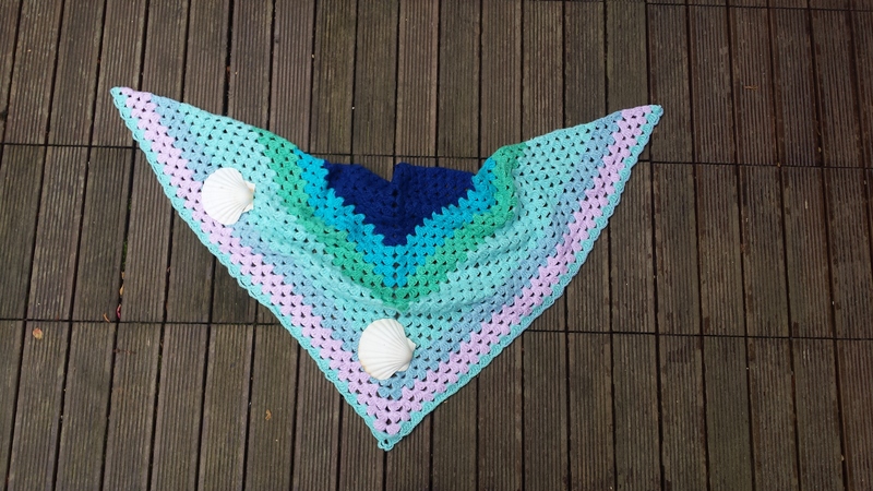 Bald ist Festivalzeit! Dieses Tuch wärmt an kühlen Sommerabenden und ist zu T-Shirt wie auch zum Kleid ein toller Begleiter. Es ist sehr einfach zu arbeiten. Da es größenvariabel und nicht an eine spezielle Wollqualität gebunden ist, eignet es sich toll zum Verwerten von Wollresten. Somit hast du auch für kleines Geld ein unverwechselbares Accessoire.