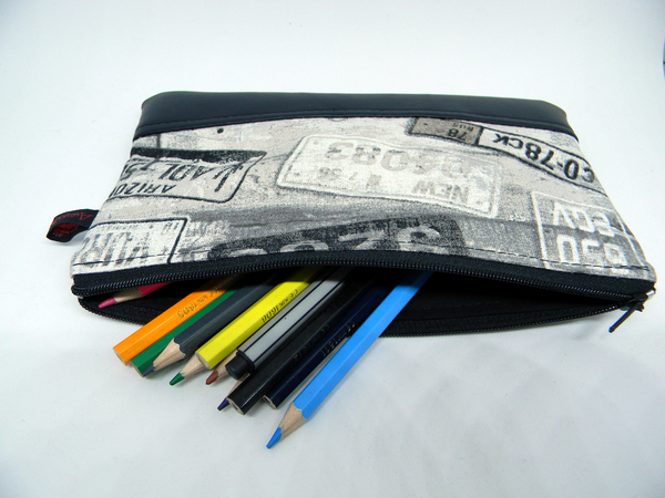 Ich verwende bei der Stiftemappe gerne gemusterte Stoffe in Kombination mit Kunstleder. Aber es gibt ja so viele Kombinationsmöglichkeiten. Was wird deine Lieblingskombination?