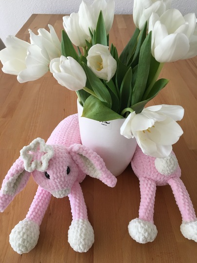 • Himalaya Dolphin Baby – Lauflänge 120m/100g (oder Katia Bambi oder ein anderes Chenille Garn) ca. 200 g Rosa und ein Rest Natur