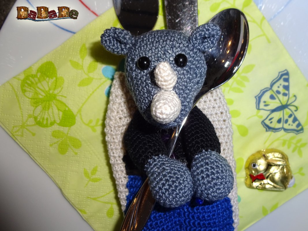Das Nashorn wir mit Nadelstärke 2; ungefähr 15cm hoch,