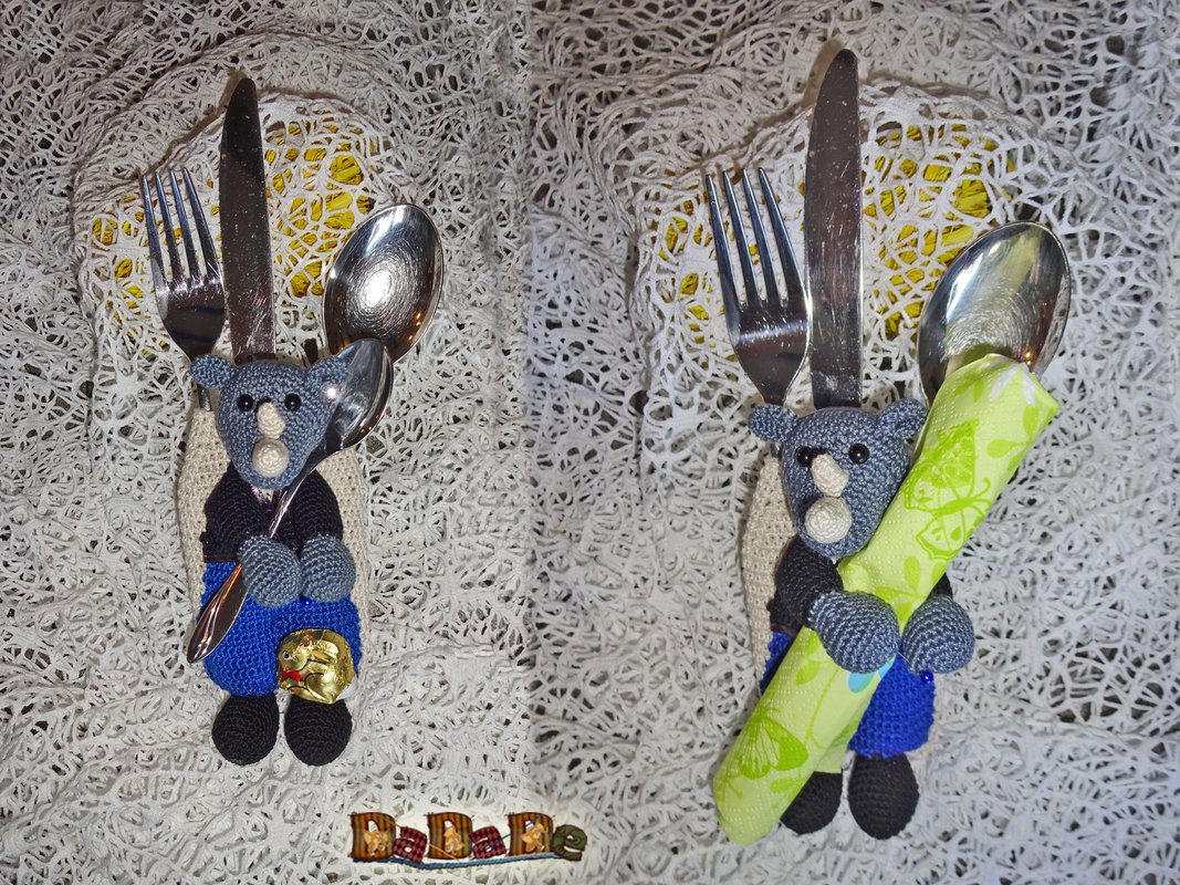 Zu der Bestecktasche gibt es auch noch einen Eierwärmer und den Serviettenhalter.
