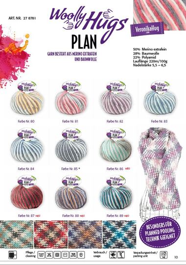 Material: Woolly Hugs PLAN (50% Merino extrafein, 28% Baumwolle, 22% Polyamid, LL = 220 m/100 g) von Langendorf & Keller 200 g Koralle Color (Farbe 81),