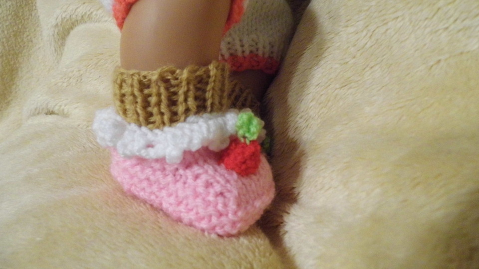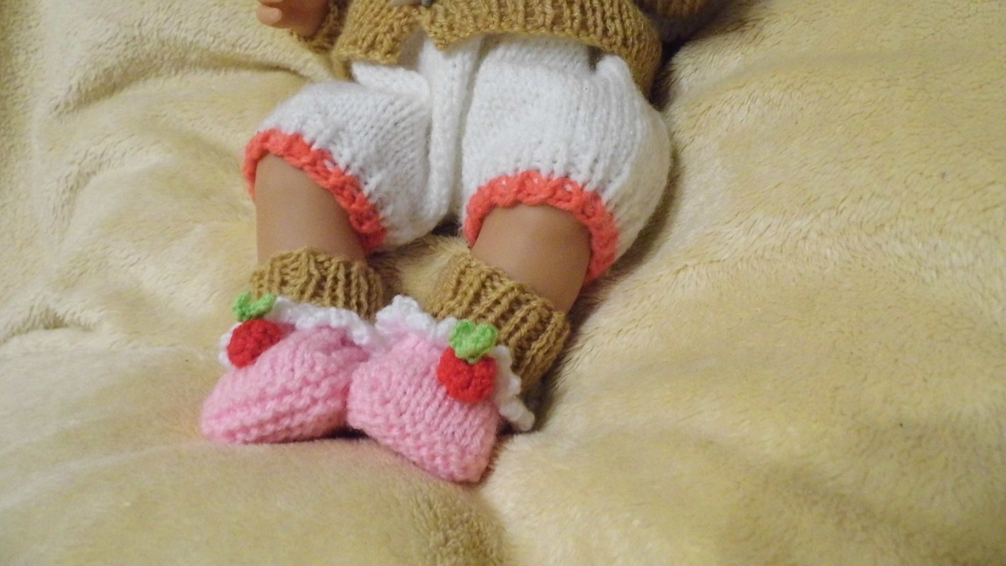 Einfache Anleitung für Puppensocken die auch Frühchen passen, ohne Nadelspiel ganz einfach aus Wollresten zu stricken.