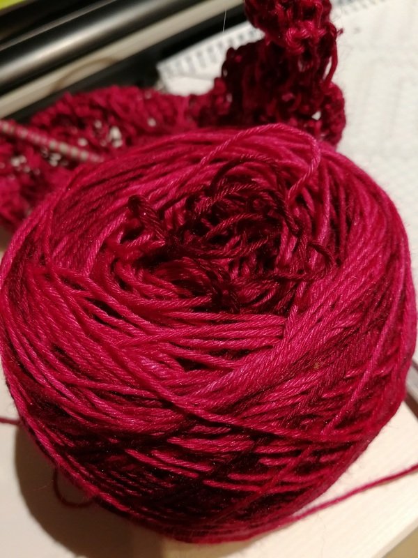 Handgefärbte Garne, z. B. aus Merino/Seide, oder ähnliche Bobbelgarne eignen sich besonders gut. Beim Originaltuch wurde die Lauflänge 400 m auf 100 g von einem handgefärbten Garn aus 80 % Merino/20 % Seide (NS 2 - 4) verwendet und mit einer Rundstricknadel Nr. 4,5 gestrickt.