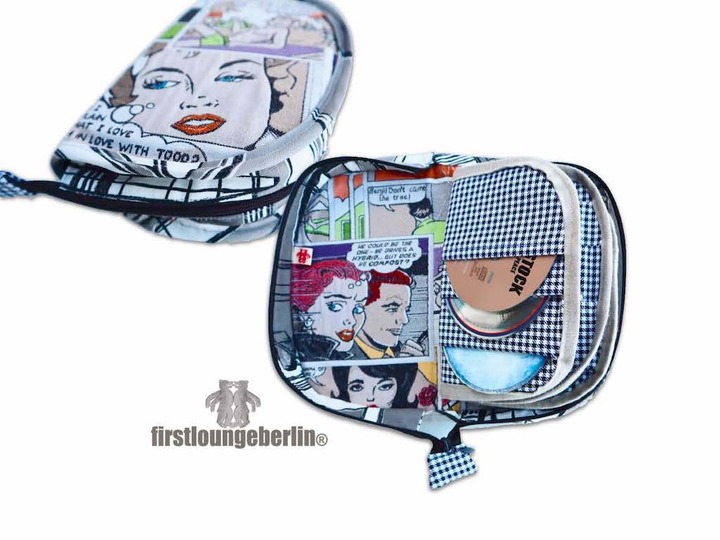 Für die Innenfächer kann ebenso nicht dehnbares, dünneres Gewebe genutzt werden, wie Baumwolle, Polyester, Satin, Seide. Bei dickeren Geweben passen die Innenfächer nur 2 x in die Tasche!