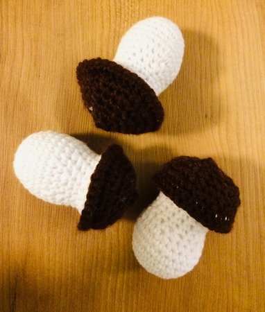 Die RoBin Manufaktur stellt euch unsere Häkelanleitung für Champignon-Pilze vor. Die Größe der einzelnen Häkelprodukte liegt bei ca. 8 cm. Hierbei wurde ein Konsens zwischen einer maßstabsgetreuen Nachbildung und einem kindgerechten Handling angestrebt. Somit handelt es sich hier um eine sehr schöne Erweiterung für jede Kinderküche und jeden Kaufmannsladen. Natürlich kann die Anleitung auch für andere Ideen eingesetzt werden, wie zum Beispiel zum Erstellen einer herbstlichen Deko.