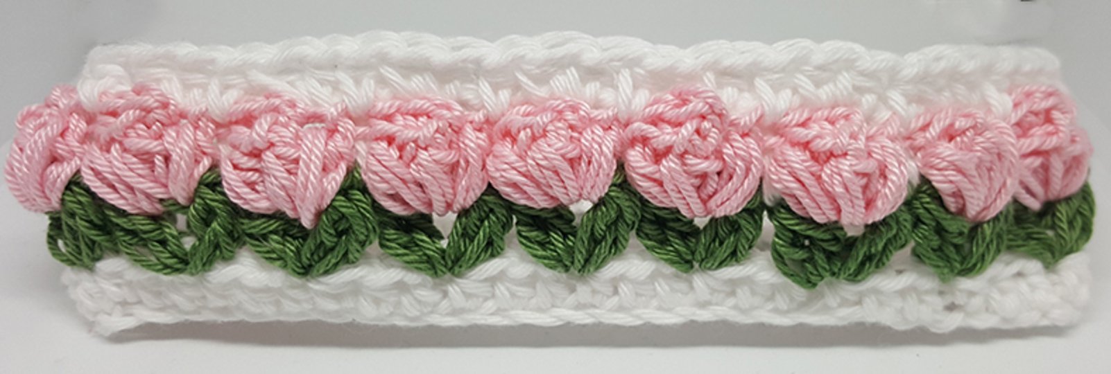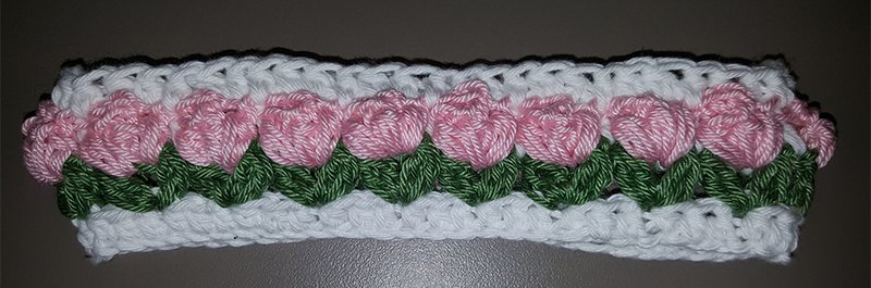 Es werden Luftmaschen, halbe und ganze Stäbchen sowie Popcornmaschen gearbeitet.