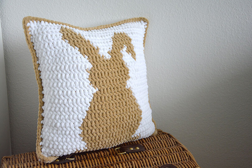 Mit der Häkelanleitung kannst du ganz einfach das Hasen Kissen selber häkeln. Ob für dich selbst oder als Geschenk zu Geburtstag, Ostern oder Einweihung. Gehäkelt aus myboshi Samt ist das Kissen kuschelig weich
