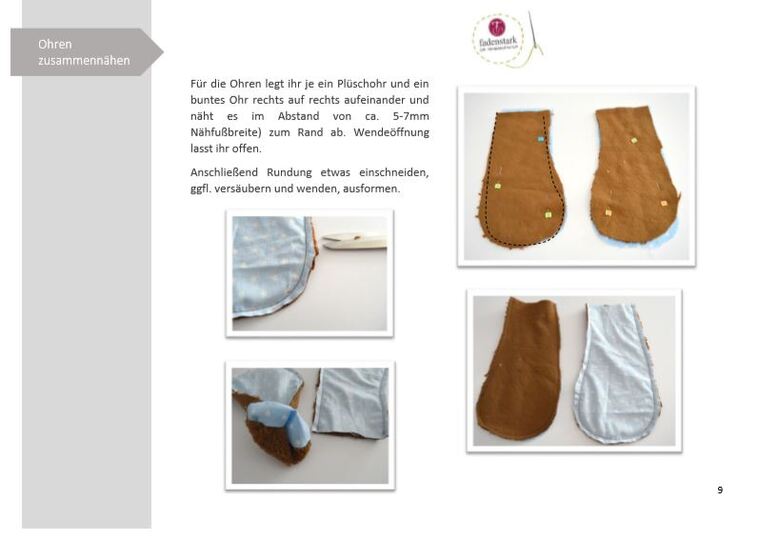 Schnittmuster + Maßangaben für Kopf/ Schlappohren und Körper