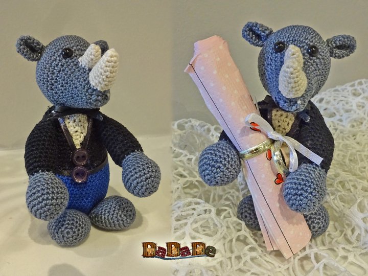 Das Nashorn wir mit Nadelstärke 2; ungefähr 13cm hoch,