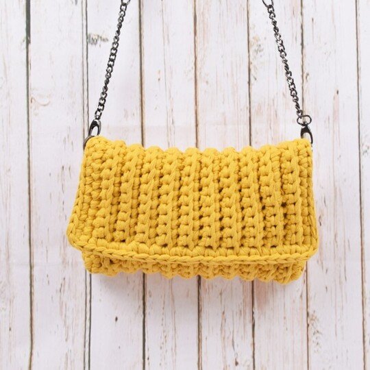 Diese modische und trendige Clutch wird mit einem schlichten Rippenmuster aus Ribbon Garn gehäkelt. Ein "Must Have" für alle Taschenliebhaber. Viel Vergnügen! :-)