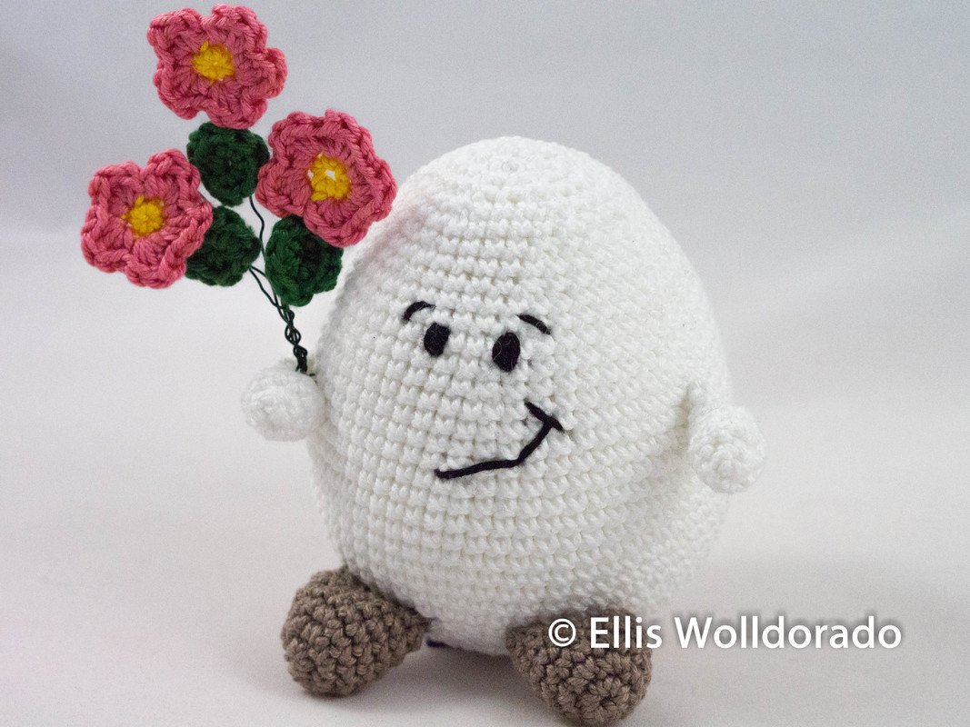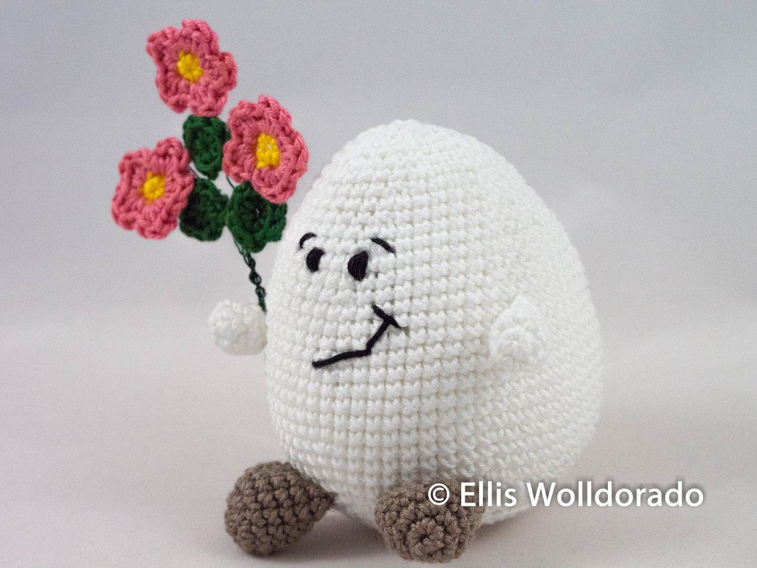Wie Du Eggbert und auch den Blumenstrauß häkeln kannst erkläre ich Dir in dieser Anleitung.