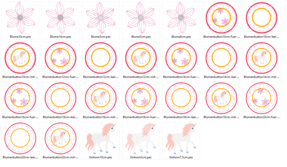 den Blumenbutton mit Einhorn von 10 bis 20 cm