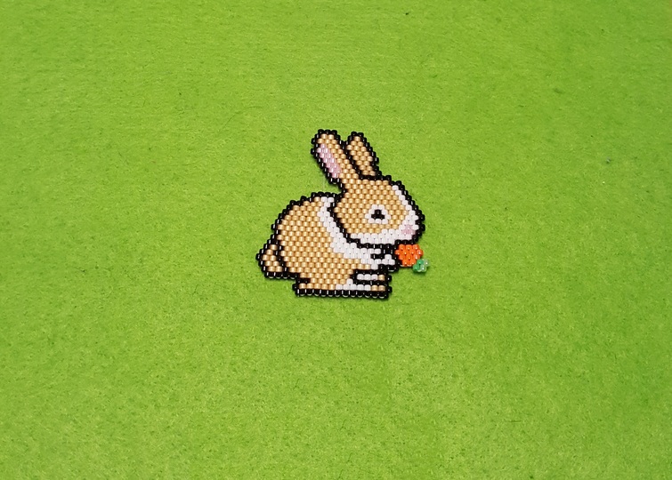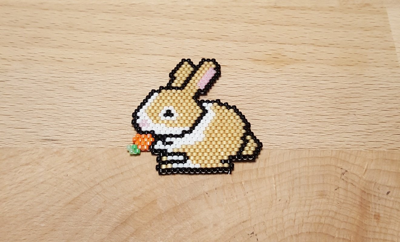 auf PDF die Vorlagen für das süße Kaninchen "Lissy" für einen Anhänger oder einen Schlüsselanhänger mit Mengenangabe der benötigten Perlen und Foto des fertigen Werkes