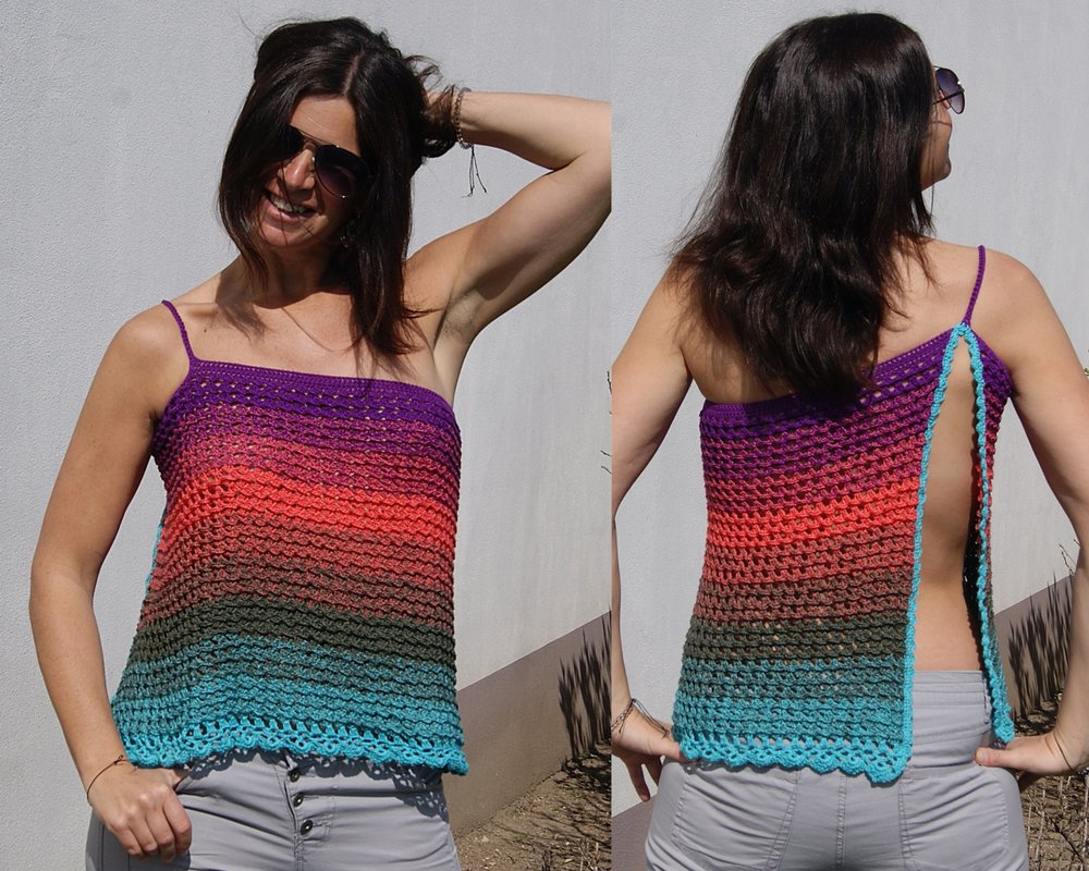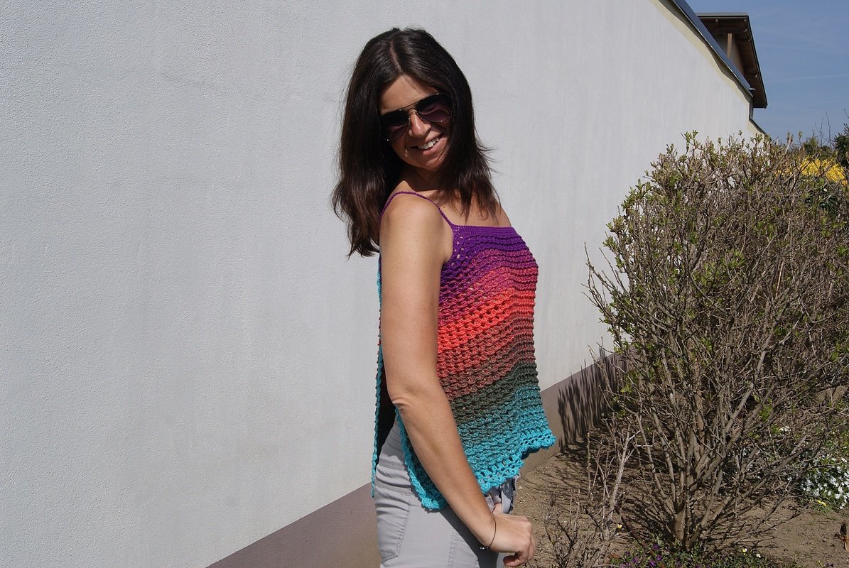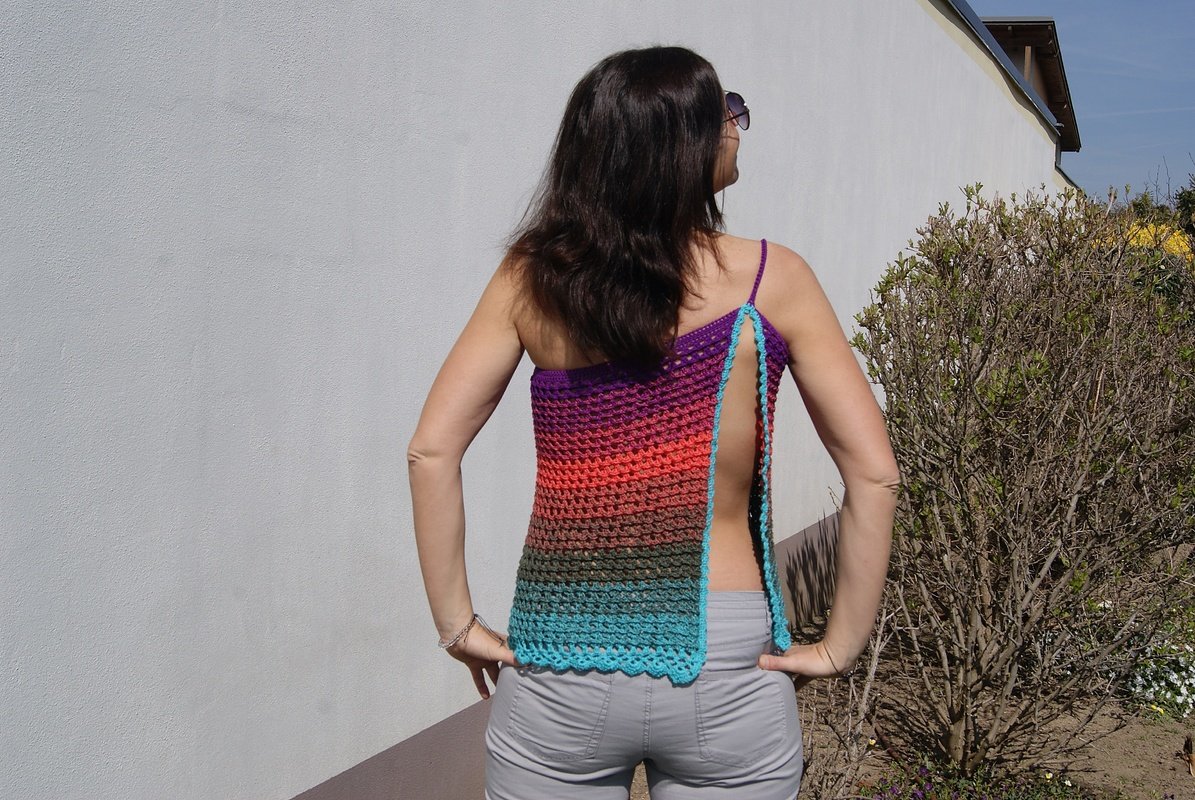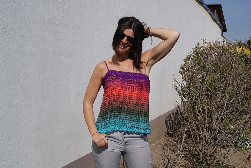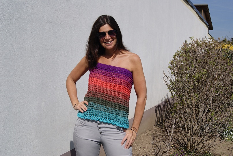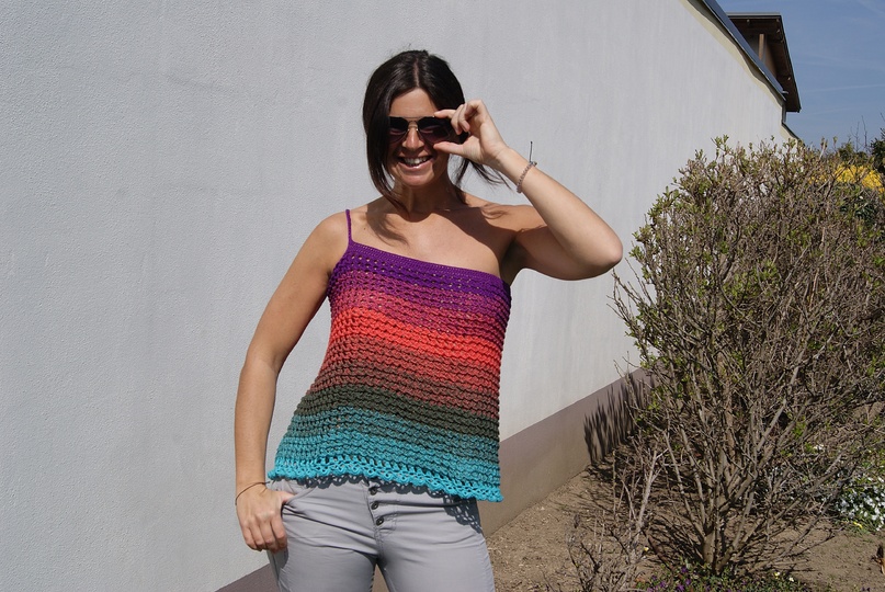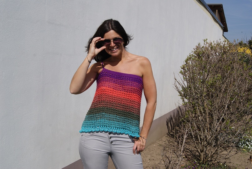 Asymmetrisches Sommertop – einfach und raffiniert zugleich! Ein echter Hingucker! Etwas größer gehäkelt, eignet sich das Muster auch wunderbar für schöne Frühlingstücher!