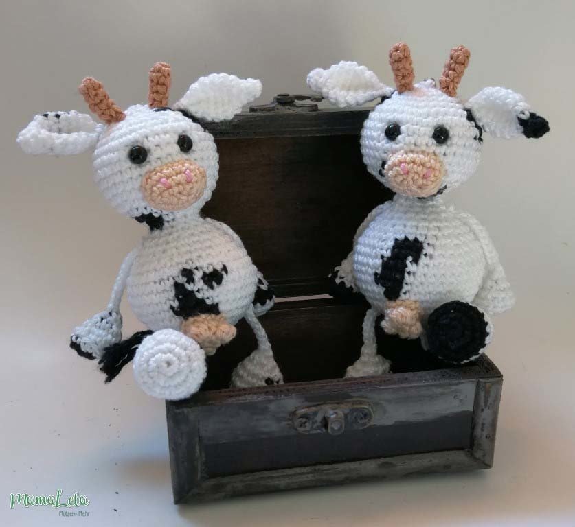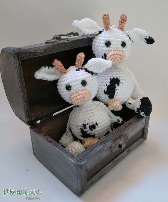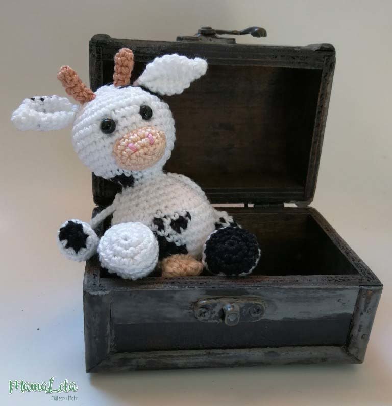 Mit dieser Häkelanleitung könnt ihr euch die im Artikelbild gezeigte Kuh zaubern.