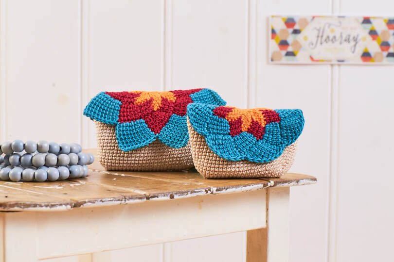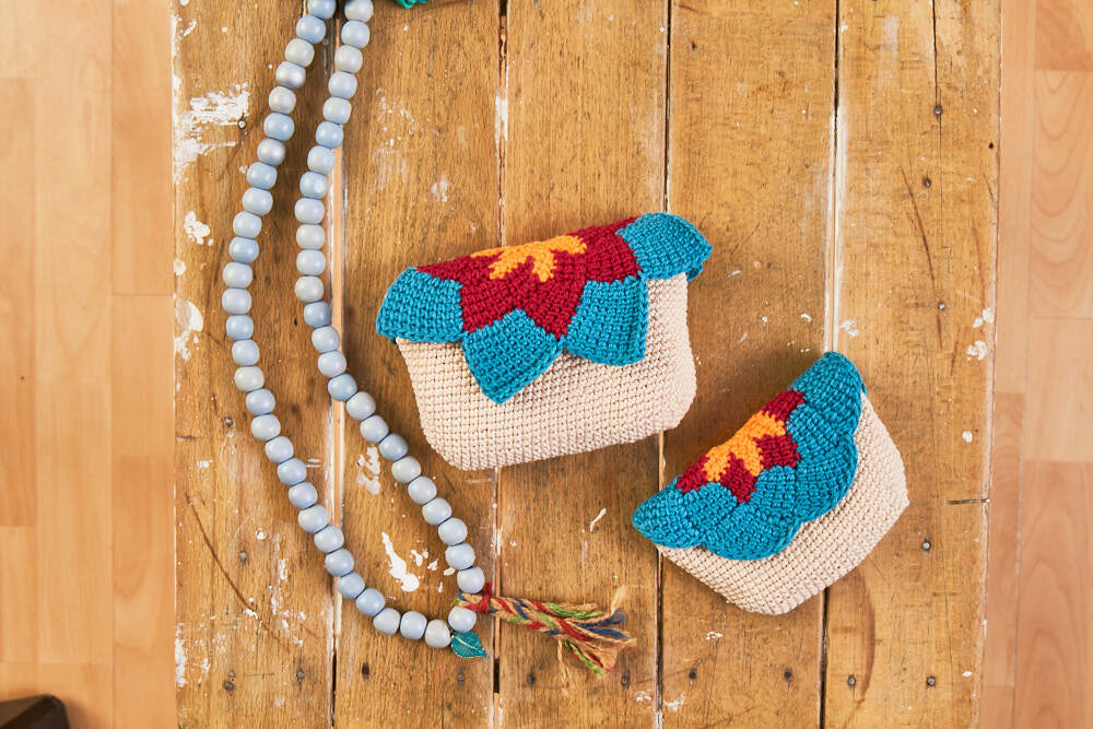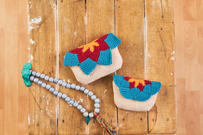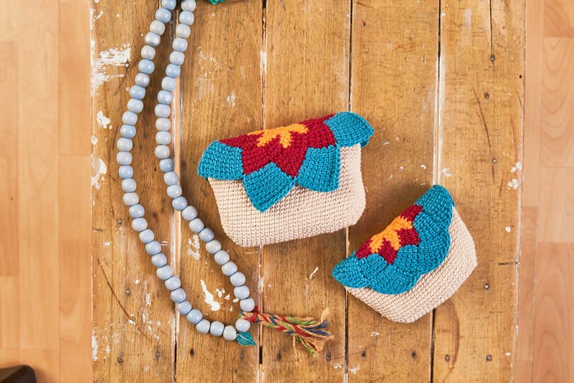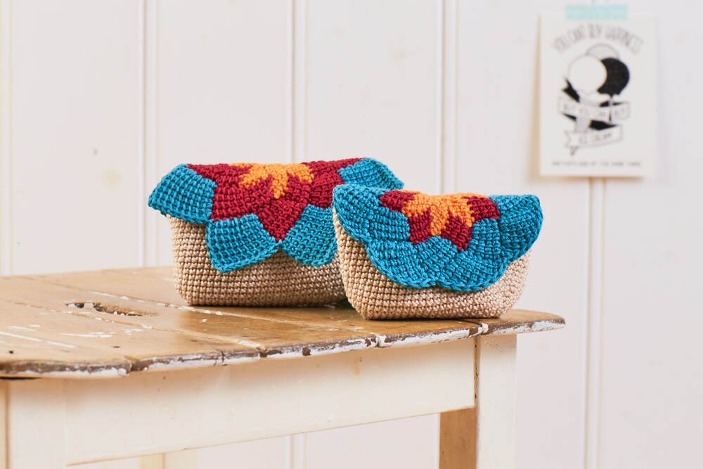 • Pro Lana „Basic Cotton“ (100 % Baumwolle, Lauflänge ca. 125 m/50 g): je 50 g Natur, Orange, Burgund und Petrol