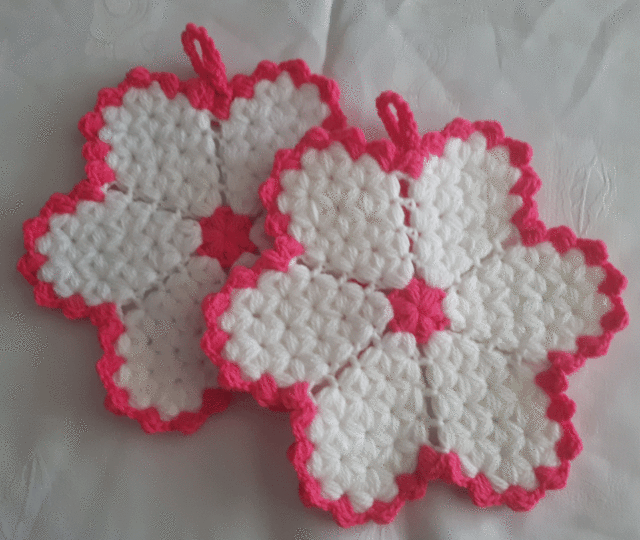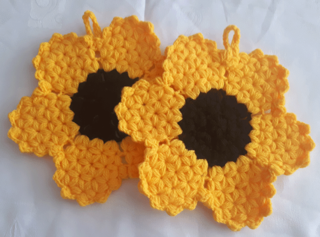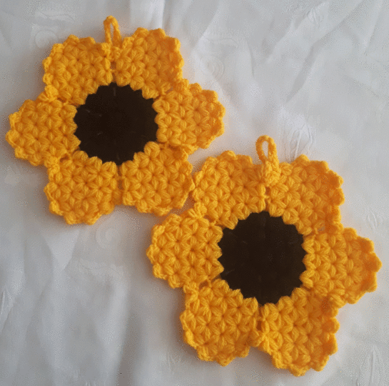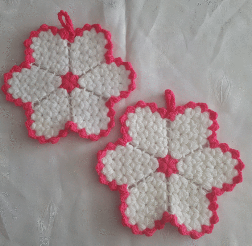 Diese Topflappen dürfen in keiner Küche fehlen. Durch die Blumenform sind sie ein echter Hingucker.