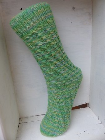 Diese Spiralsocken sind sehr einfach zu stricken, denn sie haben keine Ferse. Egal wie man sie anzieht, sie passen immer.
