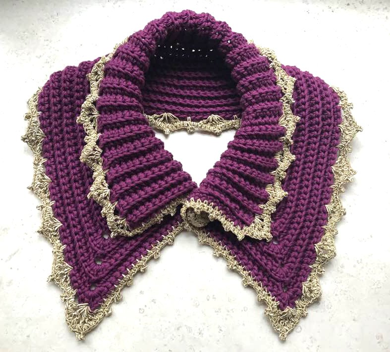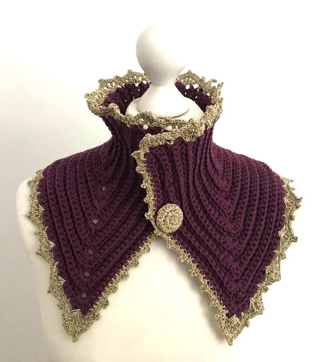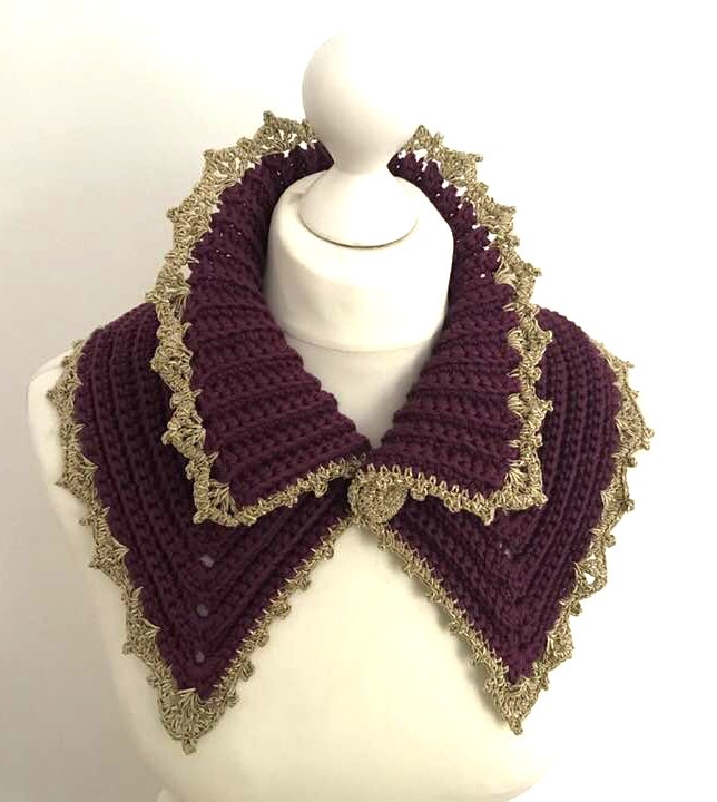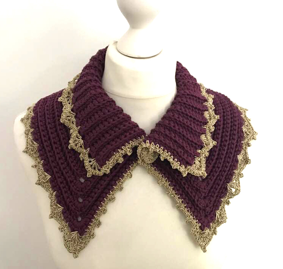 "IVANA" ist ein edler Kragen mit gehäkeltem Knopf ...und Spitzenborte und verschönert jeden Pullover, jedes Kleid und lässt auch ein einfaches Shirt elegant erscheinen.