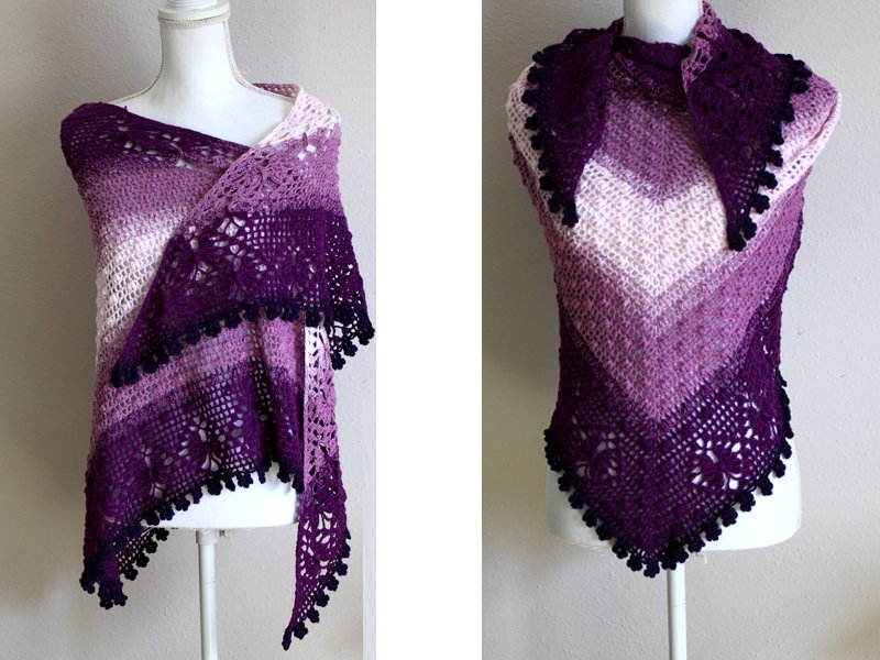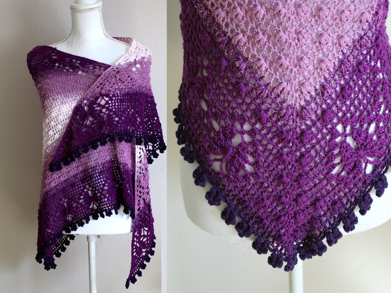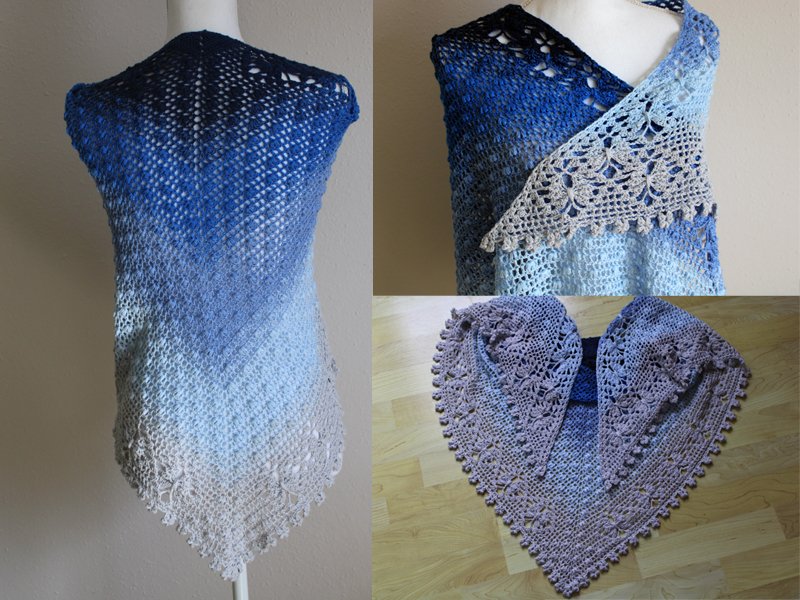 Dazwischen tummeln sich kleine Büschelmaschen im Gittermuster. Und da Schmetterlinge ja Blümchen lieben wurden diese als Abschluss gehäkelt.