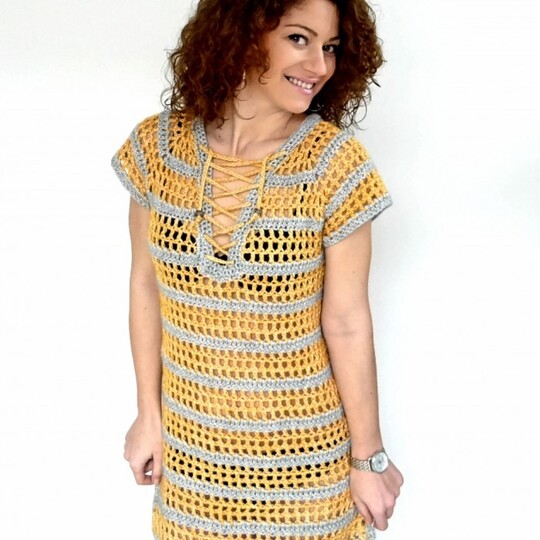 Der Tunika ist perfekt für die warmen Sommertage. Er ist leicht über dem Badeanzug/Bikini zu tragen - bei einer Fahrt zum Strand oder als Set in Kombination mit Cowboy Shorts oder einer tollen Leggins. Der Tunika wird von oben nach unten gehäkelt und hat Raglan Ärmel.