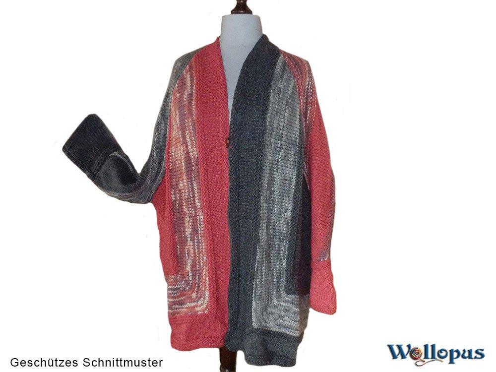 Die Jacke ist Quadratisch, also genau so lang wie hoch. Passt besonders gut zum Lagenlook.