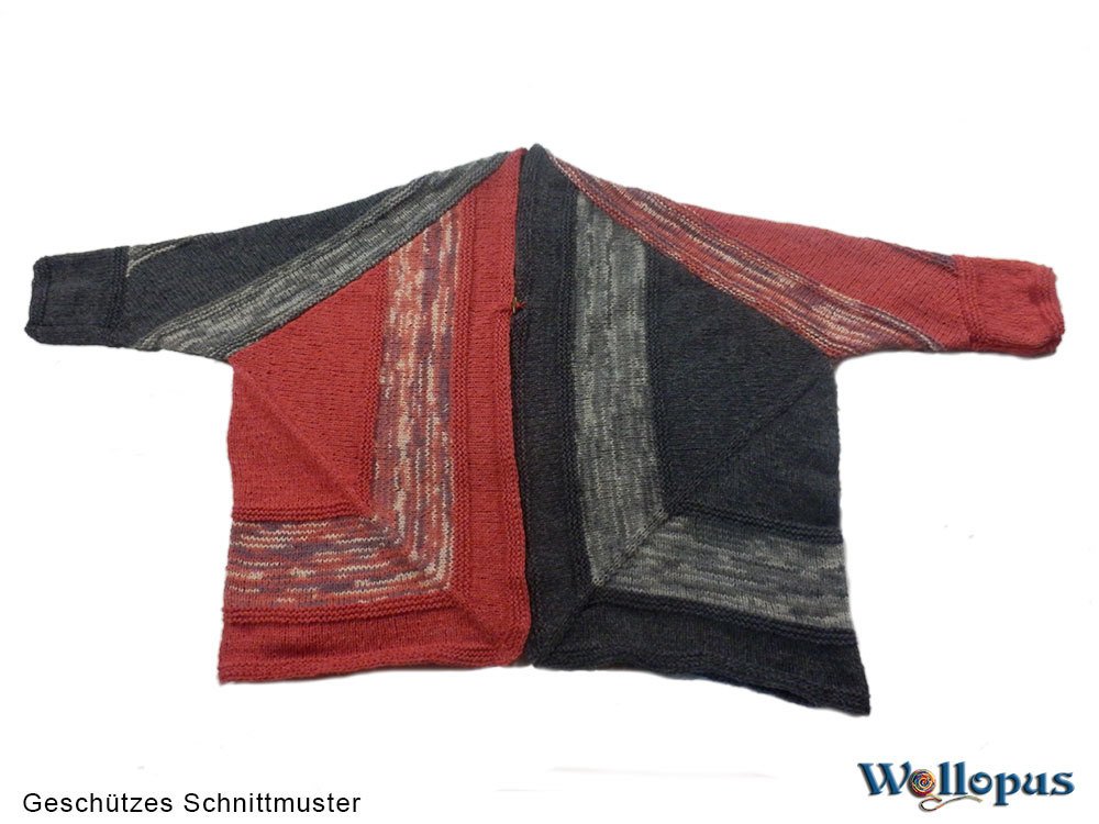 Der Schnitt ist etwas ganz besonderes, weil ich noch nie etwas ähnliches gesehen habe! Er ist super einfach zu stricken und absolut Anfänger tauglich! Warum sie so einfach ist? Weil die meisten diese Teile schon gestrickt oder gehäkelt haben! Denn diese Jacke besteht aus Dreiecktüchern. Der Clou liegt in darin, wie man diese zusammen näht.