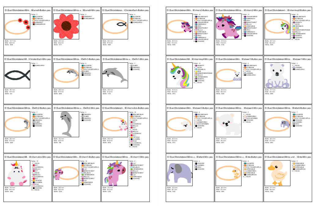 mit Einhorn, Blumen, Eisbär, LKW, Traktor, Fee, Baum, Ente, Bagger, Anker, Stern, Frosch, Füsschen, Fußball, Erdbeere, Fliegenpilz und vielen mehr.