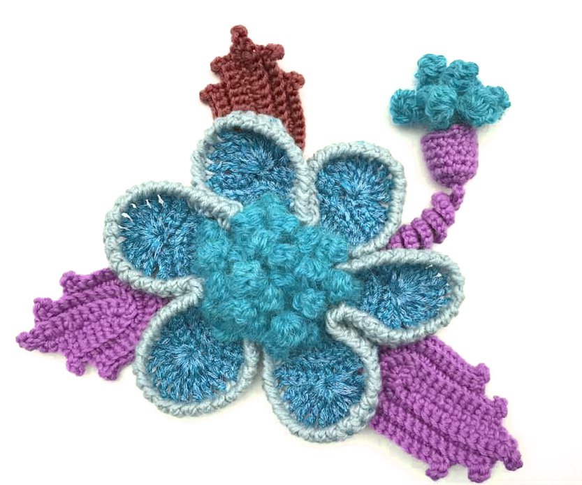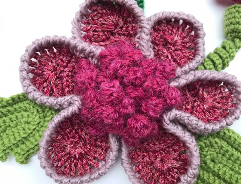 Meine Blume ist cm 20 breit und 17 cm hoch ...mit einer dünneren Wolle wird die Blume natürlich kleiner