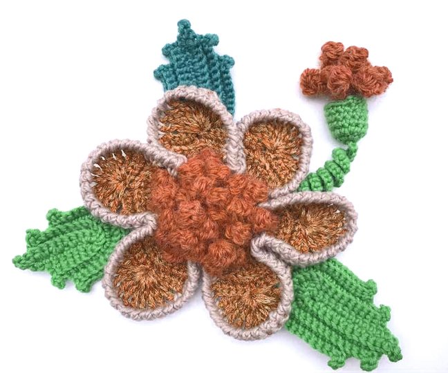 ich benutze Restwolle und Garne, die auf 50g - 120-130m hat und die Häkelnadel 2 - 2,5 die Blume kann gerne enger und fester gehäkelt werden