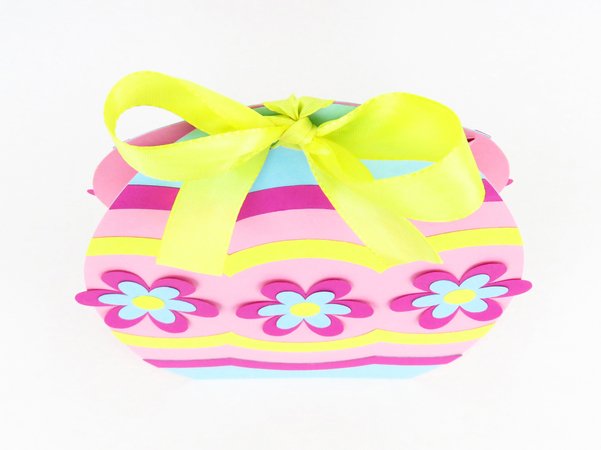 Diese hübsche Tasche ist eine ausgezeichnete Verpackung für Ostergeschenke. Durch ihre Beschaffenheit ist sie ziemlich stabil und kann einiges an Süßigkeiten, aber natürlich auch andere Geschenke aufnehmen.