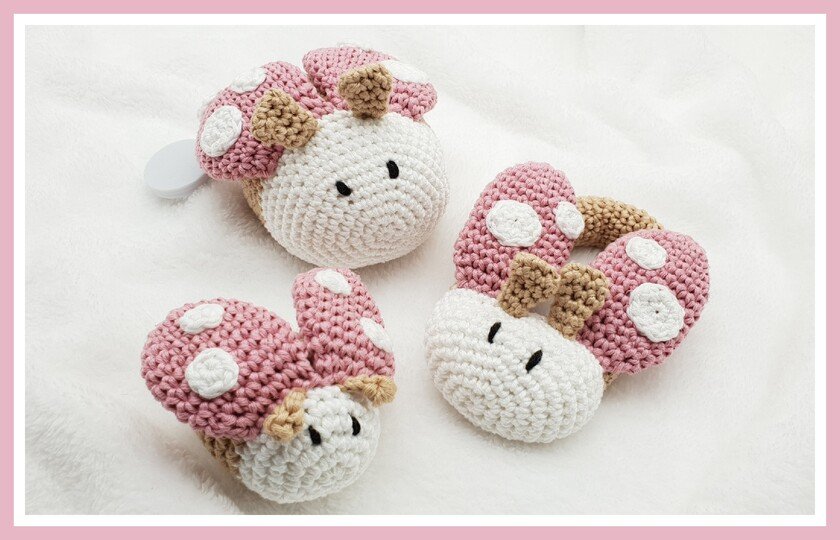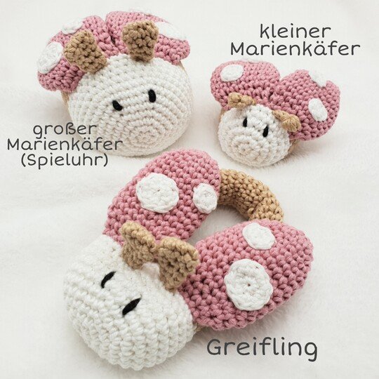 Marienkäfer Marie gibt es nun auch im günstigen Sparset. Darin enthalten sind die Anleitungen für die Spieluhr, dem Greifling und dem kleinen Marienkäfer, welcher sich prima eignet als Taschenbaumler, Anhänger einer Kinderwagenkette,...