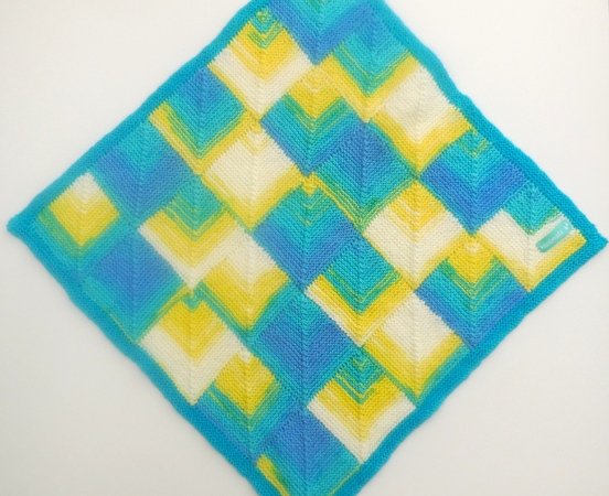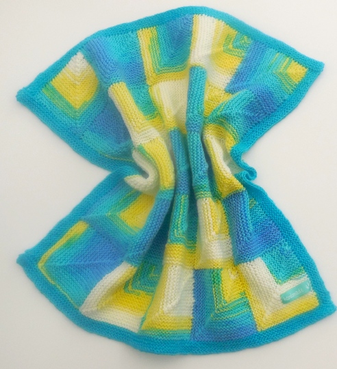 Ich habe die Decke mit Farbverlaufsgarn gestrickt, aber auch unifarben erzielt sie ihre Wirkung. Ein Hingucker und super Geschenk zur Geburt oder Taufe.
